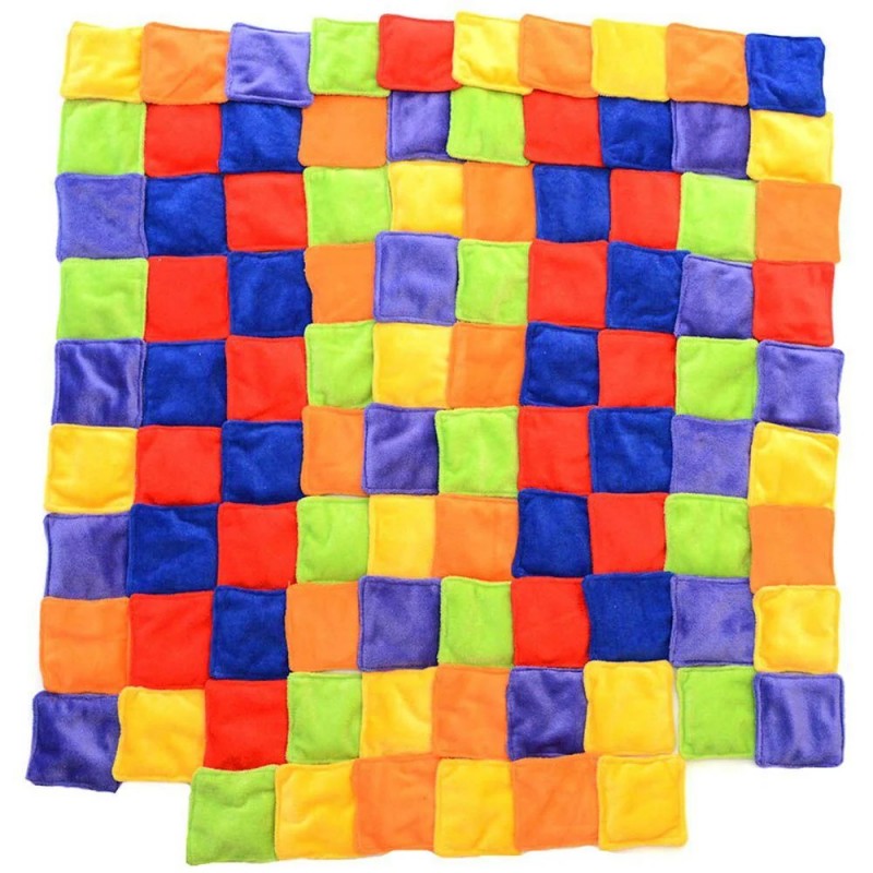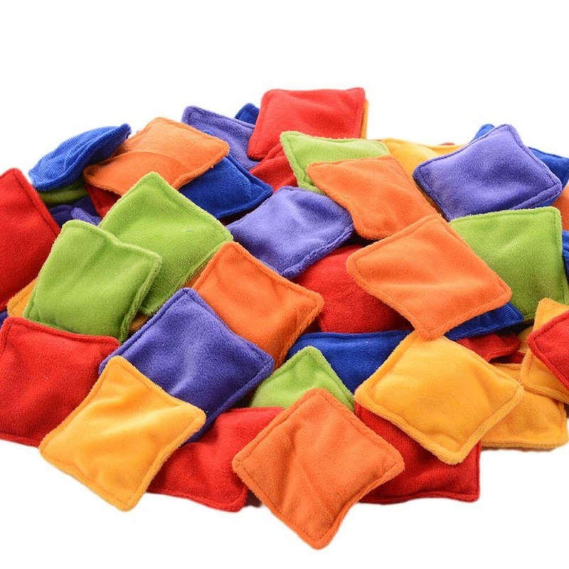 - Навчання кольорам та формам: яскраві кольори мішечків допомагають дитині вивчати кольори, а квадратна форма розвиває просторове сприйняття.