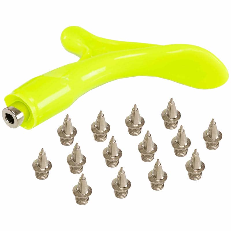 Шиповки оснащені 7 металевими шипами, що розташовуються на підошві для забезпечення відмінного зчеплення з дорожнім покриттям. Вони допомагають покращити стабільність і запобігти ковзанню, що особливо важливо при бігу по різних типах поверхні, включаючи стадіонні доріжки та менш підготовлені ділянки.