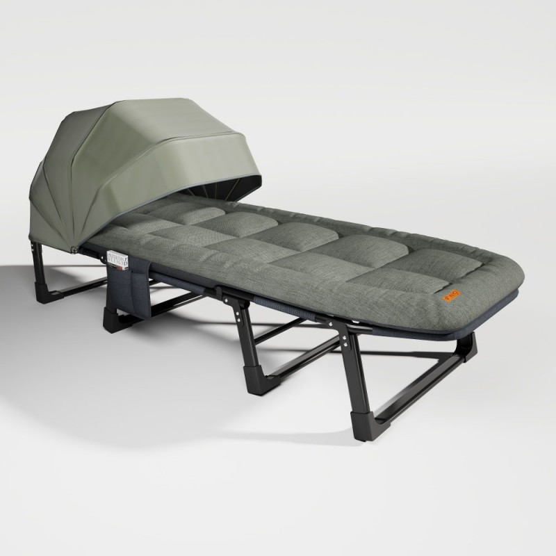 - Сонцезахисний навіс: легко змінює кут, формує тінь від прямого сонця та захищає від легкого вітру; за потреби його можна зняти.