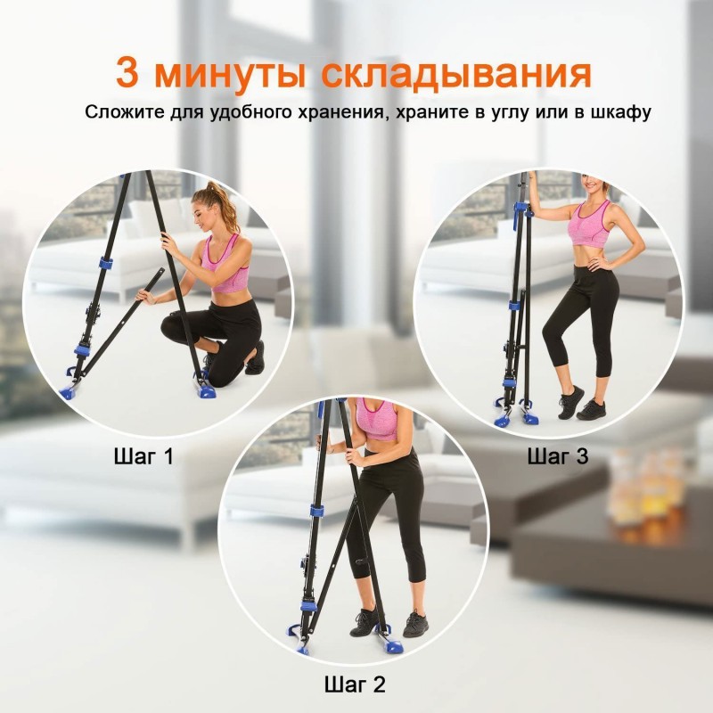 Складається для зручного зберігання. Ви можете легко зберігати Climber у кутку або навіть у шафі поза увагою, щоб він не займав зайвого місця у вашому будинку. Це робить його ідеальним для крихітних квартир або будинків, де мало місця. Однак, якщо вам потрібно налаштувати його, вона зручно розкладається для використання.