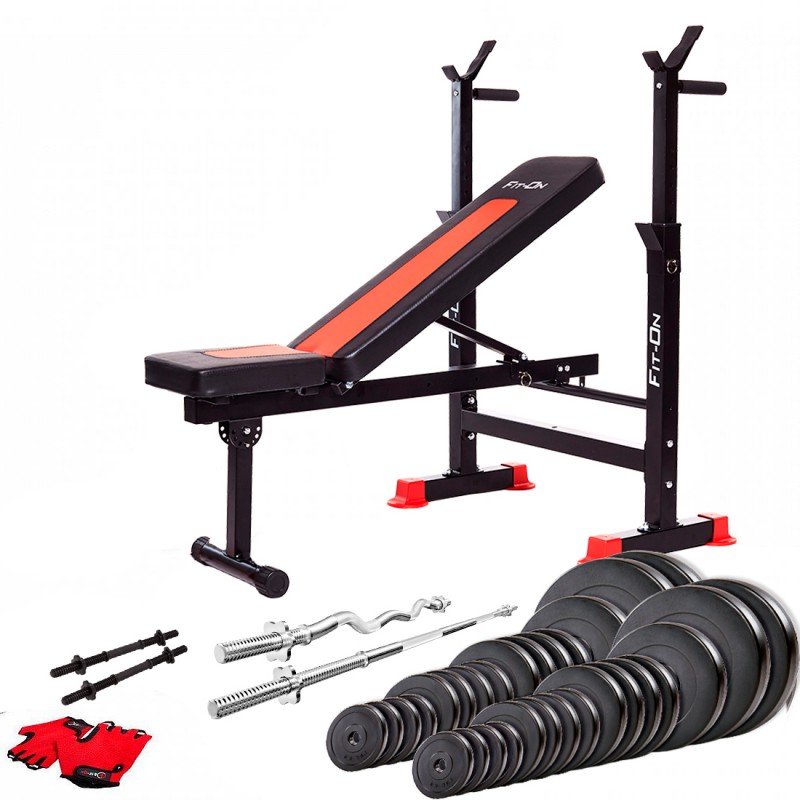 Лава тренувальна Fit-On FN-S101 + штанга та гантелі 140кг, код: 2110-0027