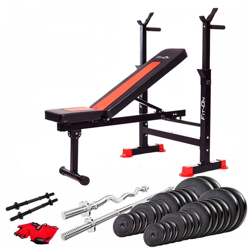 Лава тренувальна Fit-On FN-S101 + штанга та гантелі 123кг, код: 2110-0025