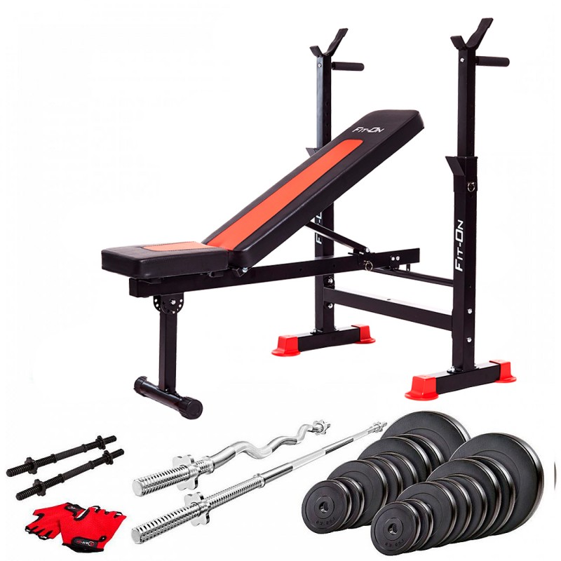 Лава тренувальна Fit-On FN-S101 + штанга та гантелі 80кг, код: 2110-0029