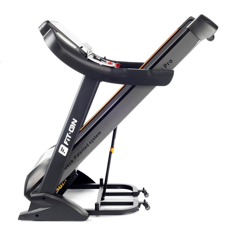 Якщо у вашому будинку недостатньо місця для зберігання бігової доріжки, це не проблема. Бігова доріжка Fit-On Semi Pro має механізм складання та може бути легко переміщений у зручне місце за допомогою вбудованих транспортних коліс.