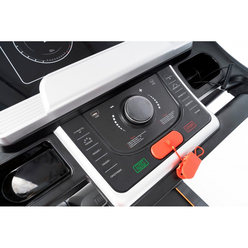 Міцна конструкція забезпечує високу вантажопідйомність користувачів – до 160 кг . Додатковою перевагою бігової доріжки Semi Pro є отвори для пляшок. Приємним бонусом є тримач для планшета або телефону та роз'єм AUX у поєднанні з входом USB.