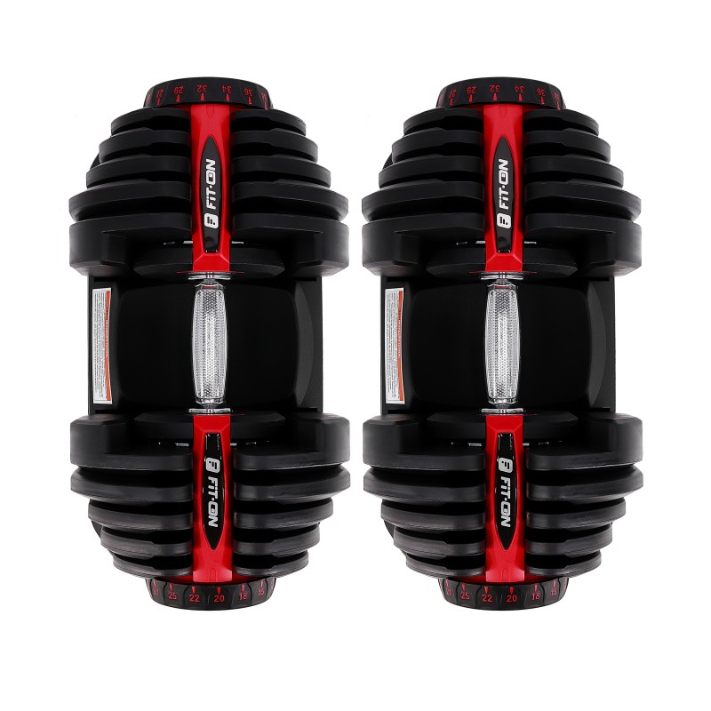 Створені за зразком популярних гантелей Bowflex SelectTech, наші гантелі Fit-On Flex пропонують максимальну гнучкість вагових налаштувань від 5 до 40 кг. Легко налаштуйте вагу, щоб відповідати вашим потребам на кожному етапі вашого тренувального процесу. Тепер у вас є можливість легко регулювати вагу прямо під час тренування, без необхідності у багатьох окремих гантелях. Завдяки унікальній конструкції, ви отримуєте безліч можливостей від одного набору гантелей.