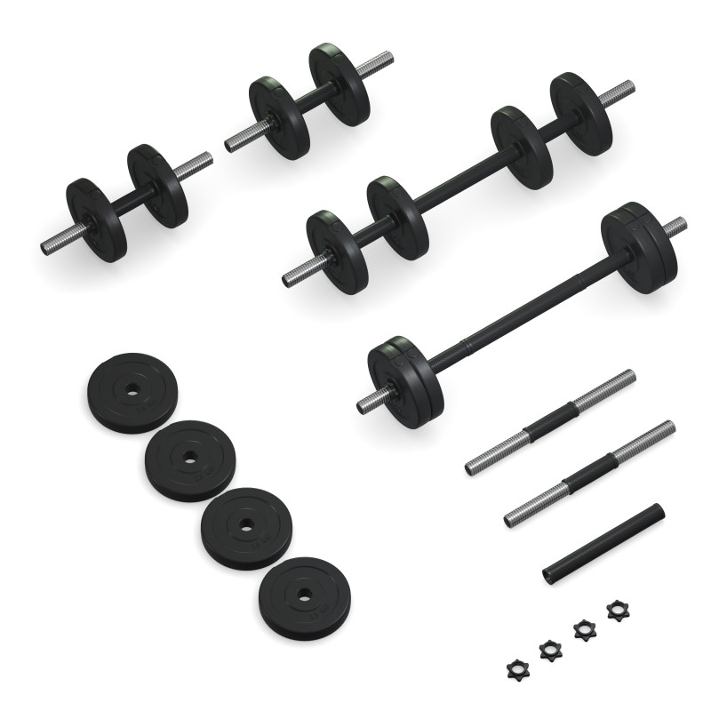 - Універсальність 2в1: Відкрийте для себе унікальну можливість використовувати гантелі як звичайні гантелі для ізоляційних вправ, або з'єднайте їх і використовуйте як штангу для комплексних тренувань.