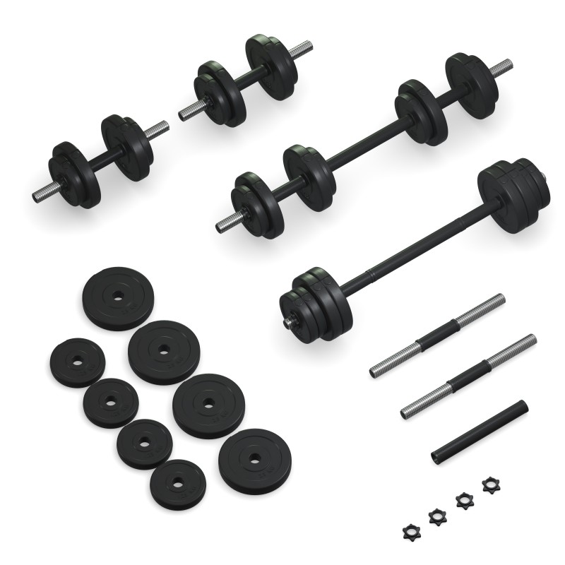 - Універсальність 2в1: Відкрийте для себе унікальну можливість використовувати гантелі як звичайні гантелі для ізоляційних вправ, або з'єднайте їх і використовуйте як штангу для комплексних тренувань.