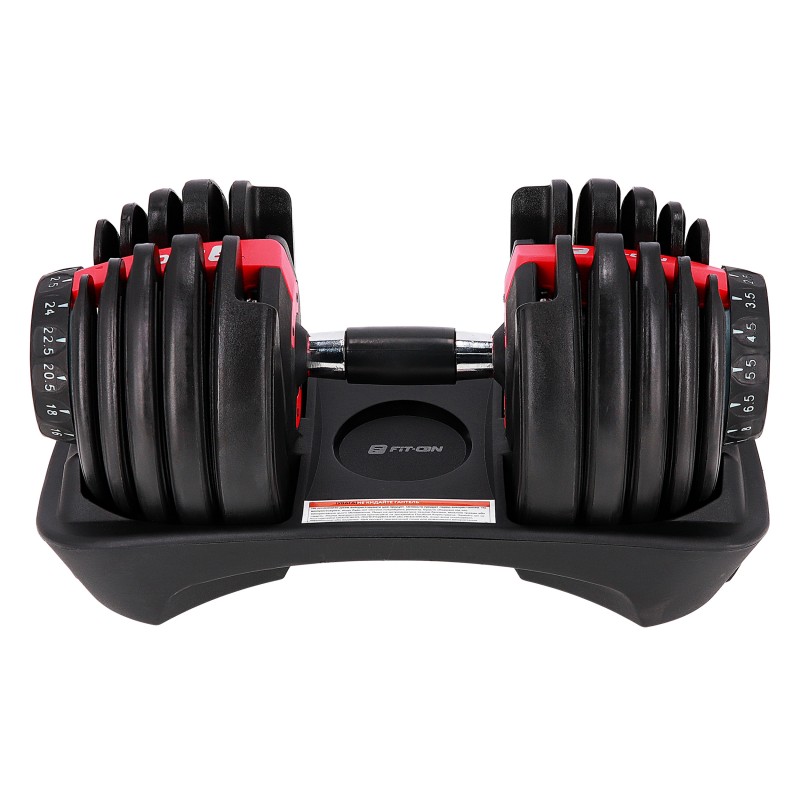 Створені за зразком популярних гантелей Bowflex SelectTech, наші гантелі Fit-On Flex пропонують максимальну гнучкість вагових налаштувань від 2.5 до 24 кг. Легко налаштуйте вагу, щоб відповідати вашим потребам на кожному етапі вашого тренувального процесу. Тепер у вас є можливість легко регулювати вагу прямо під час тренування, без необхідності у багатьох окремих гантелях. Завдяки унікальній конструкції, ви отримуєте безліч можливостей від одного набору гантелей.