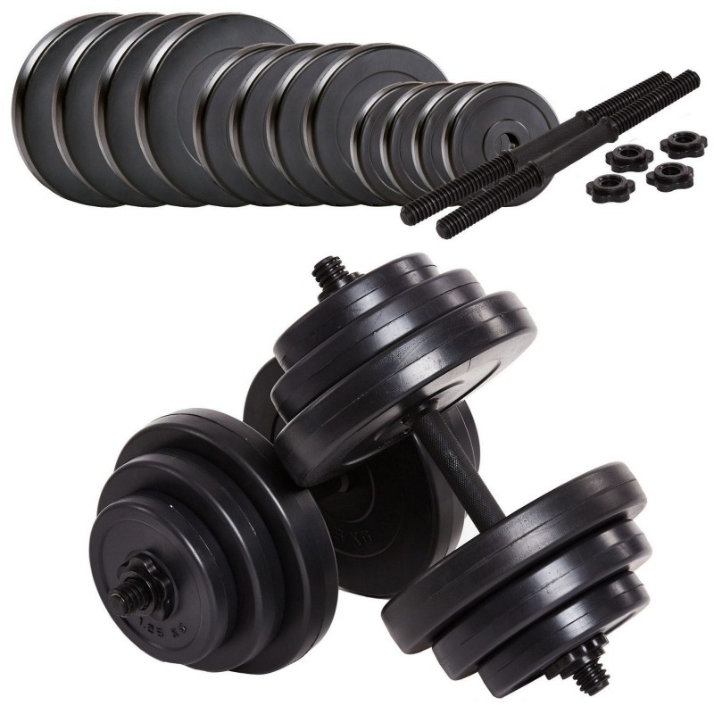 Грифи в цьому наборі виготовлені із сталевої міцної труби, покритої пластиком. На кінцях грифів є пластикові заглушки.