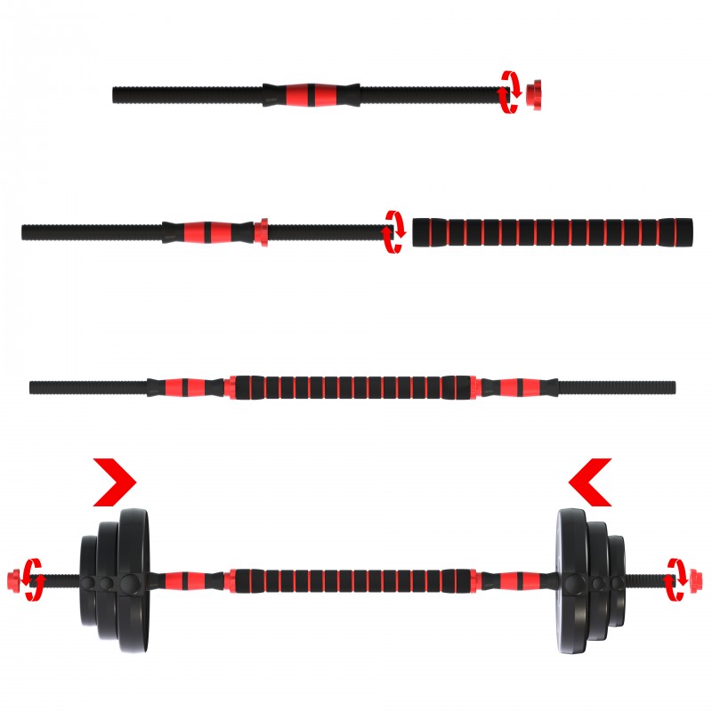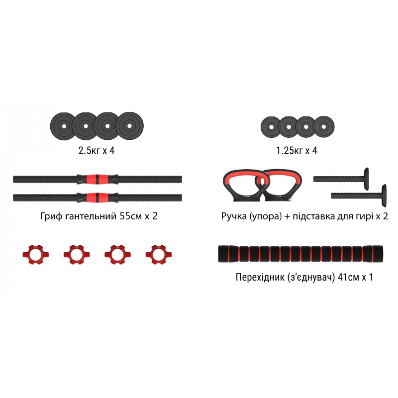 - Штанга: з’єднувальний стрижень дозволяє зібрати повноцінну штангу.