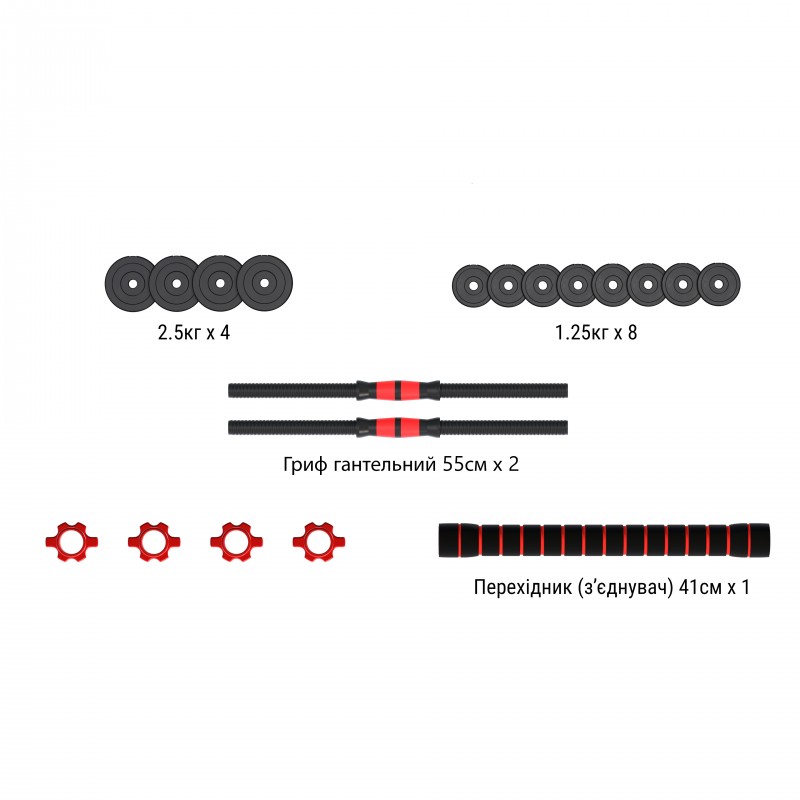• Штанга: об’єднай гантелі подовжувачем — і отримай повноцінну штангу