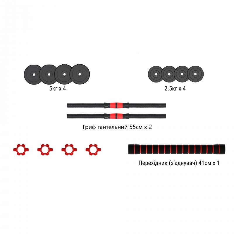 • Формат: 2в1 (гантелі + штанга)