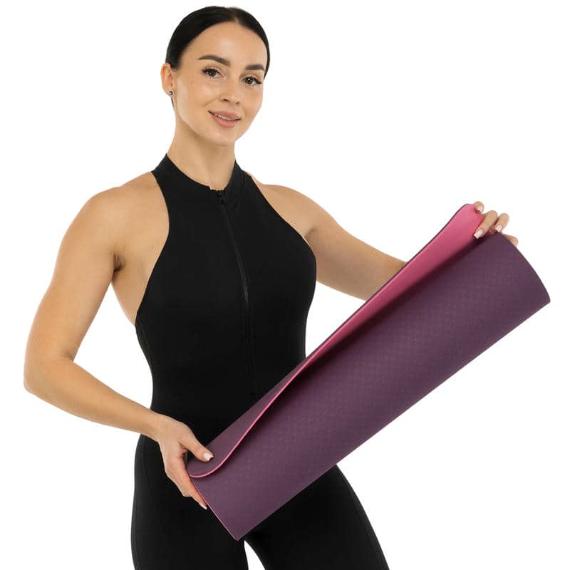 Килимок для йоги та фітнесу FitGo TPE двошаровий 1830x610x6мм, фіолетовий-рожевий, код: FI-3046-650_VP
