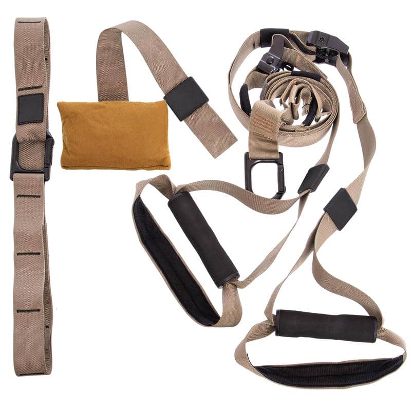 Петлі комплектуються зручним чохлом для зберігання, який легко поміститься в рюкзак або ручну поклажу. Також у наборі є навчальні матеріали з прикладами вправ і програмою тренувань.
