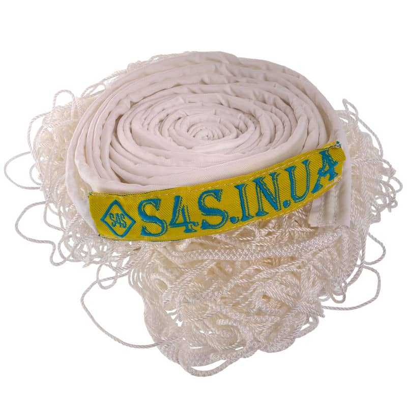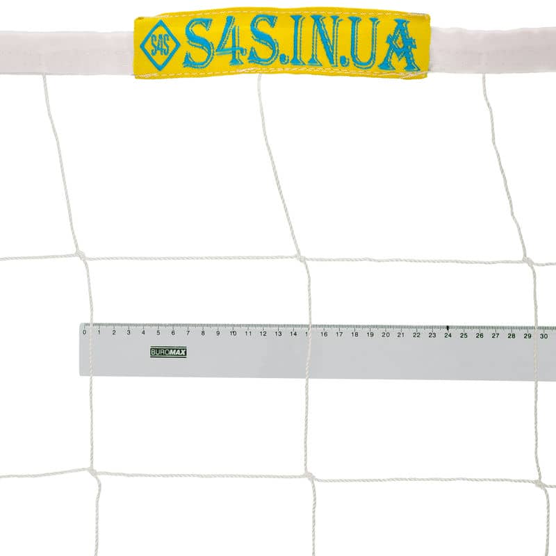 Сітка обшита по верхньому краю прогумованою тканиною, що забезпечує додаткову міцність і запобігає пошкодженню при кріпленні до стійк. Завдяки такій обшивці сітка щільно тримається на місці, не провисає та не зміщується під час гри.