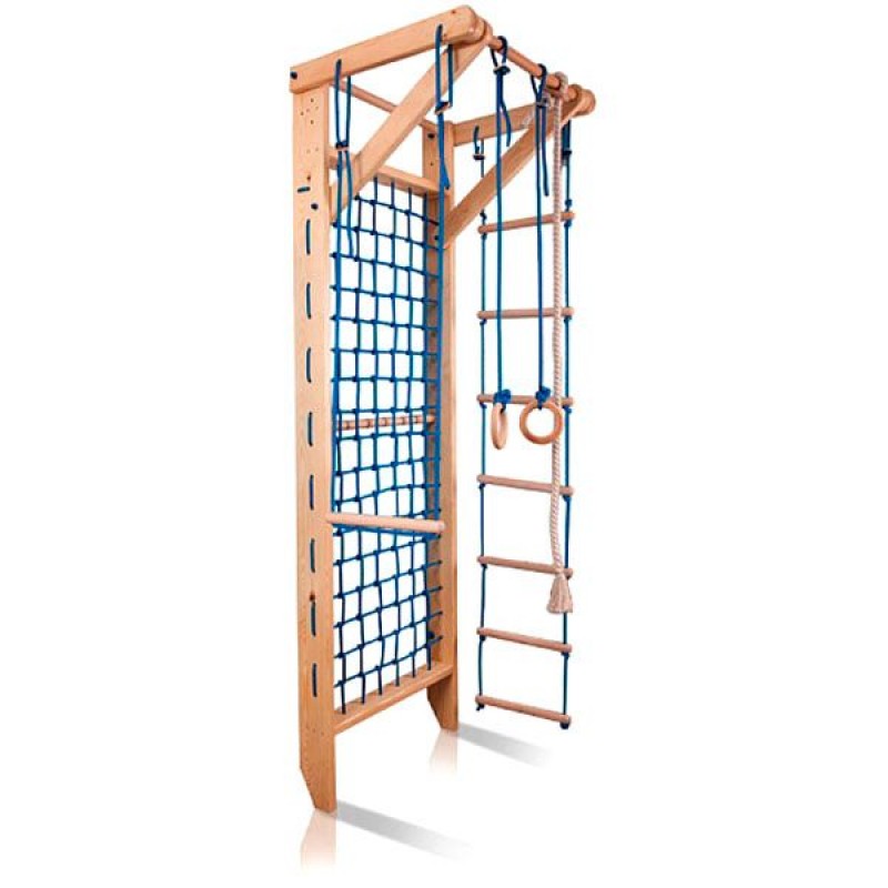 Ваші діти вважають за краще проводити час активно і з користю? Тоді вони обов'язково оцінять те, що пропонує їм гладіаторські сітка з навісним обладнанням. Настінний тип кріплення дозволяє зробити конструкцію не тільки зручною у використанні, але і економічною - для її розміщення вам не буде потрібно багато місця. Гладіаторська сітка з навісним обладнанням - яскравий приклад ефективного підбору спортивного інвентарю. Купуючи її, ви отримуєте відразу класичний турнік, гладіаторську сітку - зручний простір для лазіння і повний набір гімнастичних снарядів - канат, мотузяну драбину, кільця і трапецію. Використовуючи таке інтерактивне простір в своїх іграх, дитина отримає необхідні навички виконання найпростіших спортивних елементів, освоїть основні спортивні снаряди і значно підвищить рівень своєї фізичної підготовки.Гладіаторська сітка з навісним обладнанням підійде для приміщень з будь-яким оформленням інтер'єру - неяскраві спокійні тони натурального дерева прекрасно гармоніюють з будь-обстановкою. Екологічні матеріали, використовувані при виготовленні спортивного обладнання, абсолютно безпечні для дитини і дозволяють не турбуватися про збереження сприятливої атмосфери в просторі дитячої кімнати. Вибираючи найкращі товари для своїх дітей, ви робите внесок в їх майбутнє! Плетіння сітки з гіпоаллергічного поліпропілену, що відрізняється високою міцністю. Виступ турніка вперед: 75 см. Необхідна висота приміщення: 2,60 & ndash; 3 м. Допустимі навантаження на навісне: 80 кг. Допустимі навантаження на спорткуток: 130 кг. Колір: натуральне дерево.