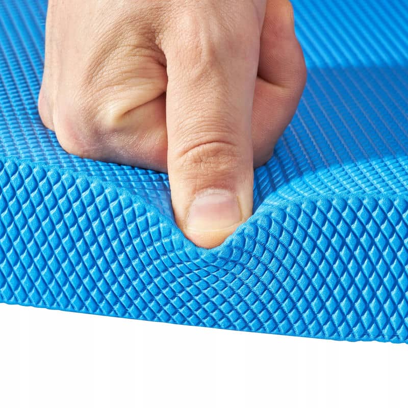 Балансувальна подушка від 4Fizjo має форму прямокутника розміром 49 x 38.5 x 5.8 см. Вона виготовлена зі спеціальної термопластичної піни TPE із закритою структурою. Матеріал характеризується відмінною гнучкістю та міцністю. Окрім того, текстурована поверхня подушки нековзка та приємна на дотик, що дозволяє проводити тренування як босоніж, так і у спортивному взутті. Виріб не поглинає вологу, завдяки чому є гігієнічним та легким у догляді. Регулярне застосування балансира зміцнює м'язовий апарат, дозволяє підвищити координацію рухів, сприяє відновленню тонусу біляхребтових м'язів, а також усуненню застою крові в області малого таза.