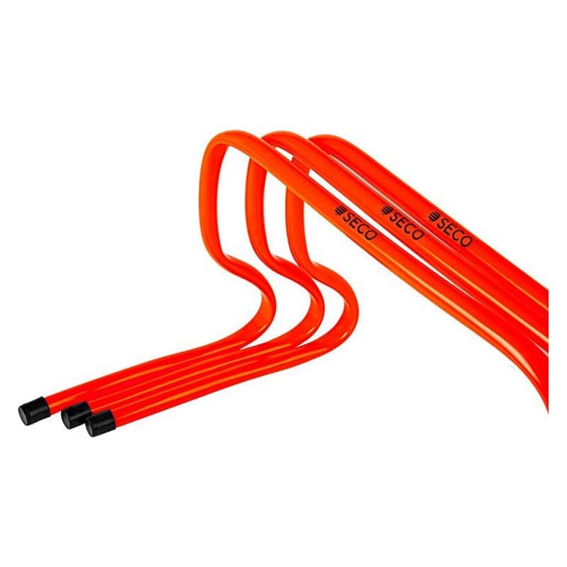 Бар'єр для бігу тренувальний Seco - помаранчевий, 30 см (18030406)призначений для спортсменів, які бажають покращити свою фізичну форму. Виготовлений бар'єр із міцного пластику, та пофарбований у яскравий помаранчевий колір, завдяки якому його добре видно навіть у темну пору доби. Діаметр бар'єру складає 3 см, висота 30 сантиметрів. Для ефективного тренування краще використати кілька бар'єрів. Для заняття бар'єри розставляють на біговій доріжці, спортсмен веде м'яч і перестрибує через бар'єри. За рахунок такого тренування у футболістів розвивається уважність, спритність та стійкість.