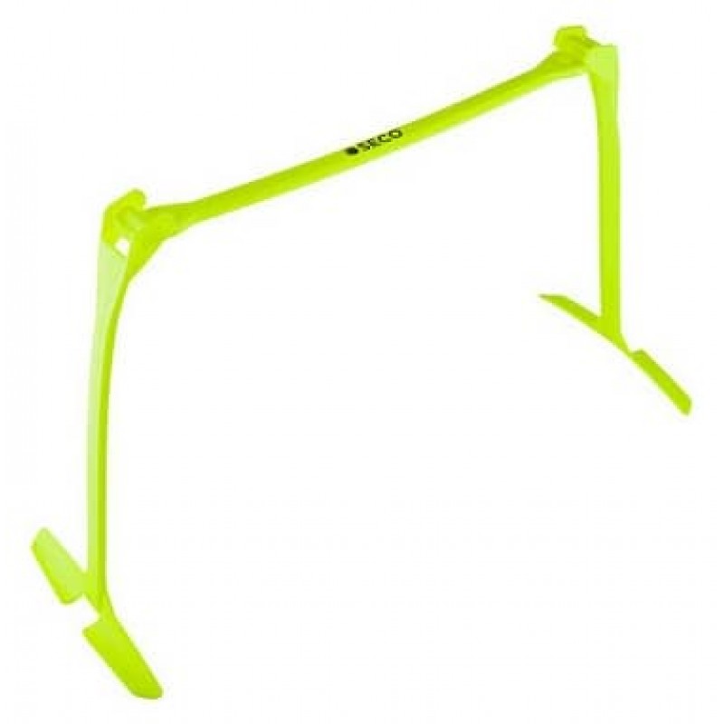 Бар'єр для бігу розкладний Secо 18030707 призначений для спортсменів, які бажають покращити свою фізичну форму та підвищити професійні навички. Виготовлений тренувальний бар'єр із міцного пластику, та пофарбований у яскравий неоновий колір, завдяки чому його добре видно навіть у темну пору доби. Бар'єри мають розкладну конструкцію, їхня висота регулюється в трьох положеннях від 15 до 33 сантиметрів. Для ефективного тренування краще використати кілька бар'єрів. Для заняття бар'єри розставляють на біговій доріжці, спортсмен веде м'яч і перестрибує через них. За рахунок такого тренування у футболістів розвивається уважність, спритність та почуття координації.