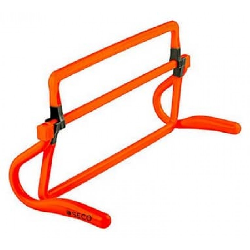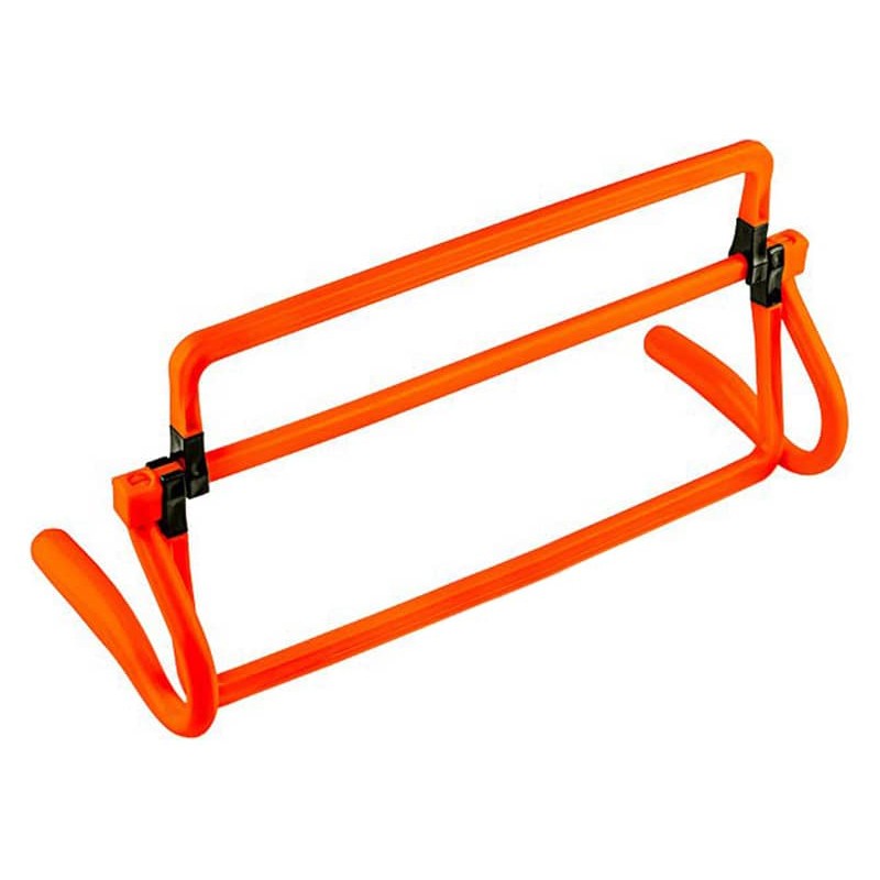 Бар'єр для бігу розкладний Secо, помаранчевий (18030106) призначений для спортсменів, які бажають покращити свою фізичну форму та підвищити професійні навички. Виготовлений тренувальний бар'єр із міцного пластику, та пофарбований у яскравий помаранчевий колір, завдяки цьому його добре видно навіть у темну пору доби. Бар'єри мають розкладну конструкцію, його можна зібрати у формі трикутника, поперечини або стандартного бар'єру, висота регулюється в трьох положеннях від 15 до 33 сантиметрів. Для ефективного тренування краще використати кілька бар'єрів. Для заняття бар'єри розставляють на біговій доріжці, спортсмен веде м'яч і перестрибує через них. За рахунок такого тренування у футболістів розвивається уважність, спритність та почуття координації.