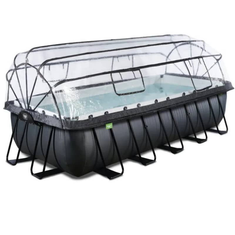 Ця модель доповнена багатофункціональним куполом і вибравши саме цей басейн, ви більше не залежите від погодних умов. Купол у вигляді накриття або тенту надійно закриває воду у басейні від небажаних забруднень, наприклад, листя, що впало з дерев. Також подібний тент сприяє швидкому прогріванню води у басейні, оскільки тепло від сонячних променів зберігається під накриттям довше. Купол прозорий, легко відкривається завдяки вбудованим пружинам, також має три віконця.