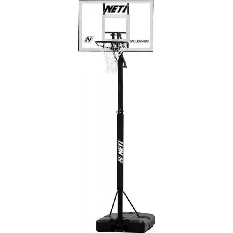 Портативне баскетбольне кільце Net1 Millennium ідеально підходить як для рекреаційної гри в баскетбол, так і для тренувань високого рівня. Професійний полікарбонатний щит і пружинний обруч повторюють відскок обруча, який використовується в НБА, ББЛ або інших системах високого рівня. Щоб забезпечити пряму гру під сіткою, кошик відсувається від стовпа, який з міркувань безпеки загорнутий у захисний чохол.