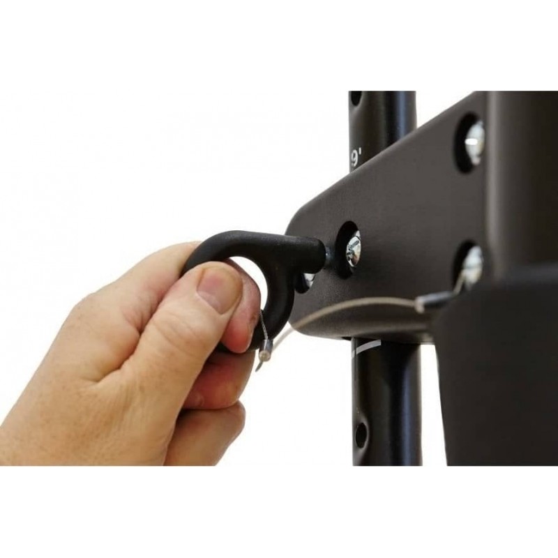 Коліщатко на передній частині основи дозволяє легко переміщати систему, просто нахиліть систему назад під кутом 45 градусів і поверніть у потрібне місце. Якщо ви хочете закріпити систему в одному місці, у комплект входять анкери, але вони не потрібні для стабільності системи.