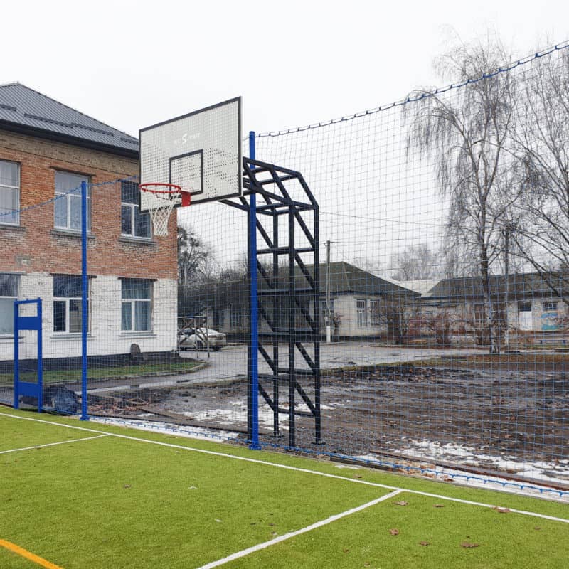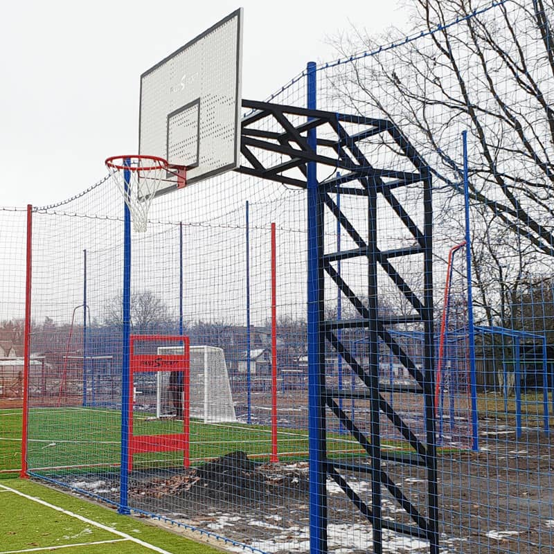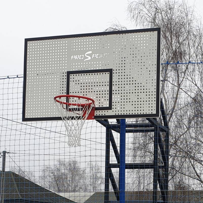 Баскетбольний кошик виготовлений зі сталевої труби діаметром 21,5 мм. На ньому передбачені спеціальні кріплення для фіксації сітки без застосування зайвих обв’язок і мотузок. Кошик також пофарбовано порошковою фарбою.