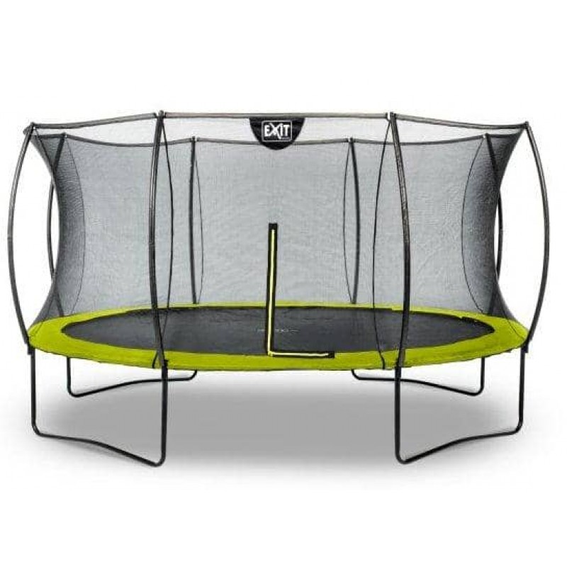 Батут Exit Silhouette 427 зелений - красивий, надійний, довговічний, сучасний і прекрасно розроблений, без сумнівів, буде чудово виглядати в будь-якому саду або дворі будинку. Конструкція досить стійка і поставляється в комплекті з захисною сіткою, яка оснащена яскравим флуоресцентної зеленої блискавкою, щоб ви могли відразу побачити, чи правильно вона закрита. Батут має контрастний чорний матовий колір з включеннями яскраво-зелених акцентів, що робить його елегантним і привабливим.
