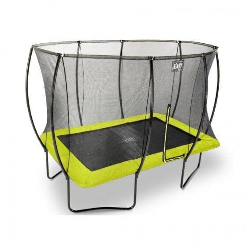 Батут EXIT Silhouette прямокутний 214x305 зелений на ніжках. Красивий, надійний, довговічний, сучасний і прекрасно розроблений, без сумнівів, буде чудово виглядати в будь-якому саду або дворі будинку. Конструкція досить стійка і поставляється в комплекті з захисною сіткою, яка зручно відкривається з допомогою флуоресцентної блискавки зеленого кольору, так що Ви відразу зможете побачити закрита блискавка належним чином.