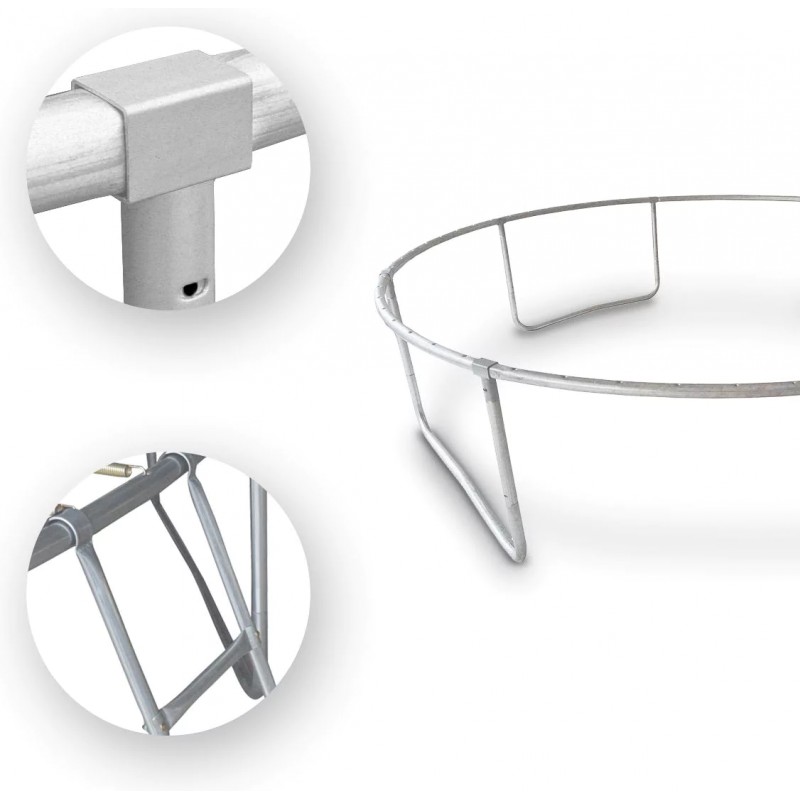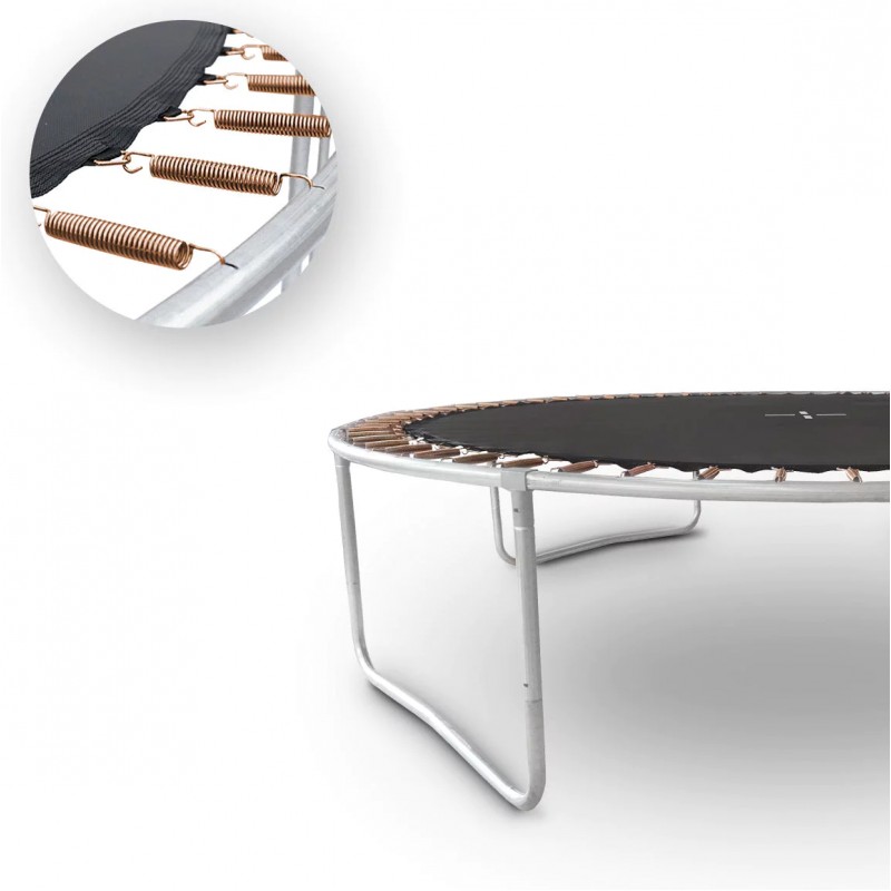 Стійку і міцну конструкцію створюють закруглена рама, яка забезпечує оптимальний натяг сітки, і подвійні «U»-подібні ніжки. Профільовані металеві стійки, з яких складається конструкція батута, покриті м'яким поролоном, що підвищує безпеку дитячих ігор. Широкий вхід і драбинка з 2 сходинками, що входять в комплект, забезпечують легкий доступ дітей до батута. Також вхід можна закрити, щоб дитина не потрапила на батут за відсутності опікунів.
