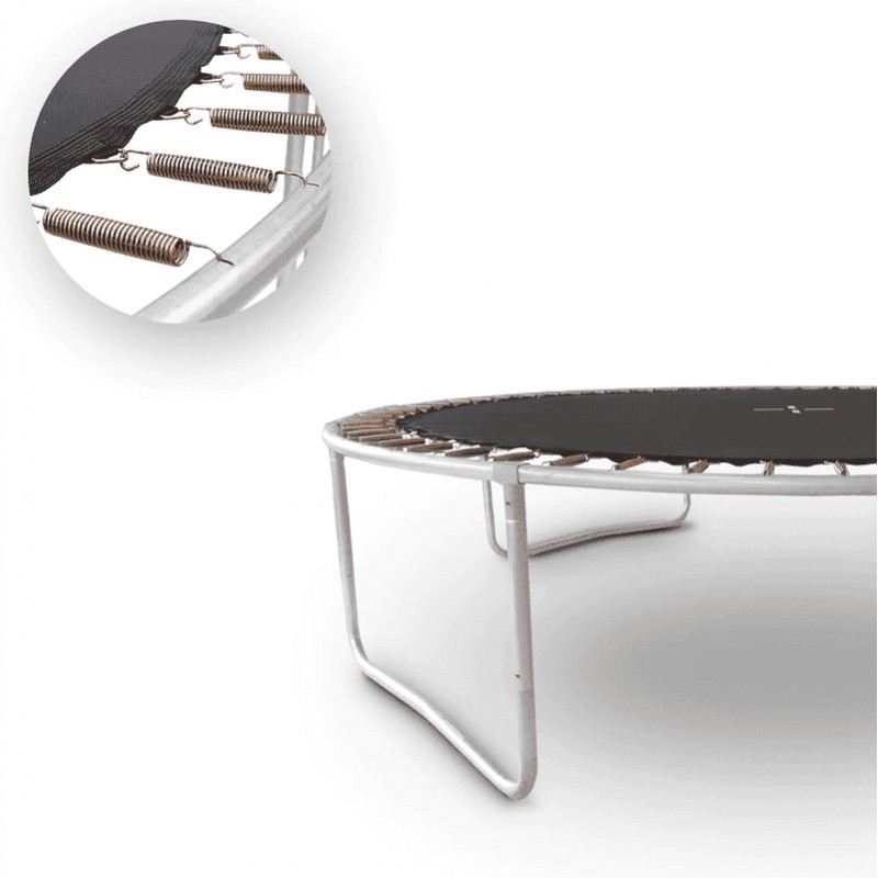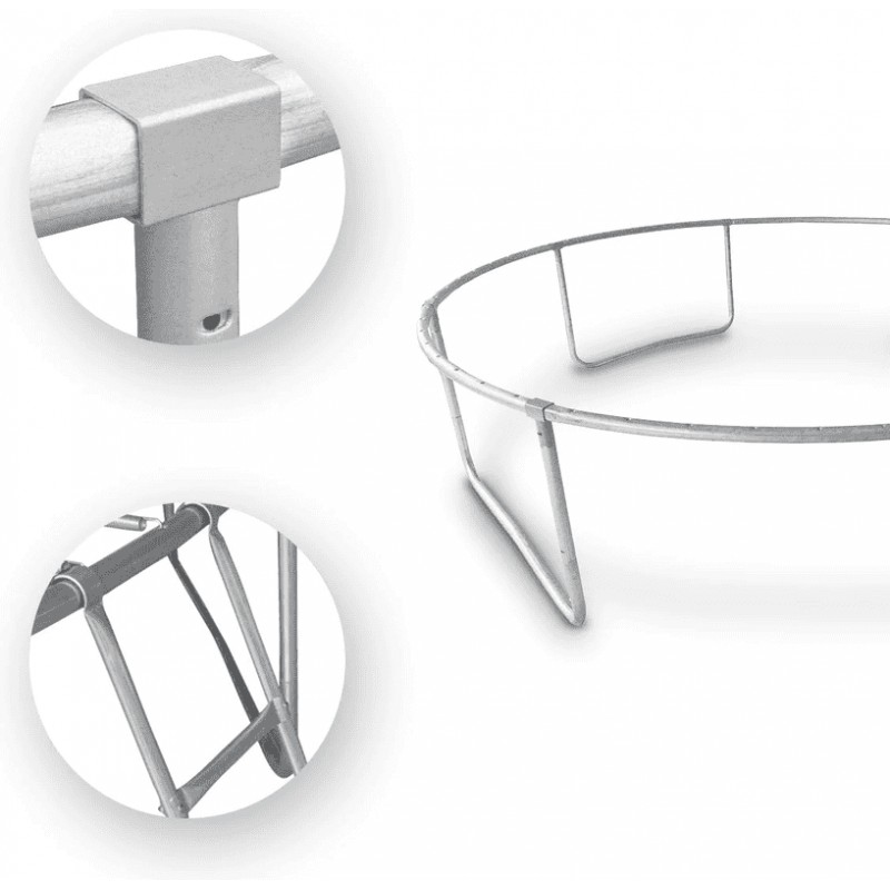 Стійку і міцну конструкцію створюють закруглена рама, яка забезпечує оптимальний натяг сітки, і подвійні U-подібні ніжки. Профільовані металеві стійки, з яких складається конструкція батута, покриті м'яким поролоном, що підвищує безпеку дитячих ігор. Широкий вхід і драбинка з 2 сходинками, що входять в комплект, забезпечують легкий доступ дітей до батута. Також вхід можна закрити, щоб дитина не потрапила на батут за відсутності опікунів.