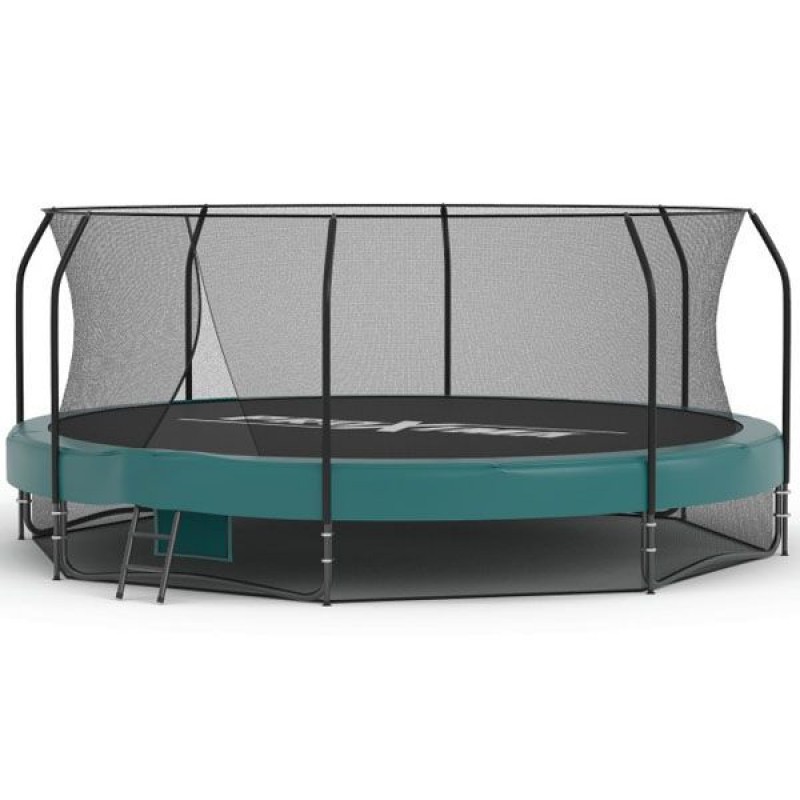 Батути Proxima Premium розроблялися для використання на вулиці при будь-яких погодних умовах (дощ, сонце, сильний вітер), вони розраховані на багаторазове збирання-розбирання і багаторічну експлуатацію. Каркас батута виготовлений з використанням вуглецевого волокна (Carbon Fiber). Цей матеріал завдяки поліпшеній міцності жорстко фіксує форму батута, надаючи більше простору для стрибків. Відмінною особливістю конструкції є подвійні опори. Патентований механізм передбачає подвійне кріплення металевих хомутів-фіксаторів до W-подібним ногам батута (8 шт). Результати тестів показали високі показники стійкості такої конструкції при багаторазових критичних навантаженнях. Використовувані матеріали отримали європейські сертифікати CE, TUF, що є гарантією екологічності та якості виробів. Каркасні труби діаметром до 4.2 см мають підвищену межу міцності, гальванізовані. Використано хімічне оксидування для посилення антикорозійних властивостей. Сталеві гальванізовані пружини (88 шт) виконані з високолегованої сталі, стійкі до корозії і довговічні, з підвищеною межею пружності, надійно закріплюють ПВХ тент діаметром більше 4,5 метрів. Захисний мат для пружин створений з декількох шарів: м'який амортизуючий поролоноподібний шар покритий декількома шарами поліетилену і зовнішнім шаром ПВХ. Матеріал стрибкового полотна називається Перматрон (Permatron) - еластичний матеріал, здатний повертатися в початковий стан при постійному впливі з різним зусиллям. Термічна обробка волокон матеріалу забезпечує високу міцність на розрив, стійкість до стресів матеріалу. Перматрон вологостійкий, термостійкий матеріал, являє собою антисептик, не піддається розпаду від ультрафіолету. Матеріал захисної сітки - лавсан з поліефірних волокон, він дає дуже невелику усадку, також ця тканина слабо розтягується, відрізняється високою міцністю і зносостійкістю, вологостійкий, стійкий до ультрафіолету. Полотно і додаткові елементи виконані в кольорі «Смарагдовий газон», батут ідеально впишеться в екстер'єр будь-якої ділянки. Застібка - блискавка і три пластикових засувки для більш надійної фіксації сітки. Кольорова інформативна упаковка, ідеальний подарунок до будь-якого свята. Висота сітки, см: 180 см. Висота рами, см: 89 см. Максимальне навантаження: 160 кг. Комплектація: батут, захисна сітка, сходи, нижня захисна сітка, мішок для взуття.