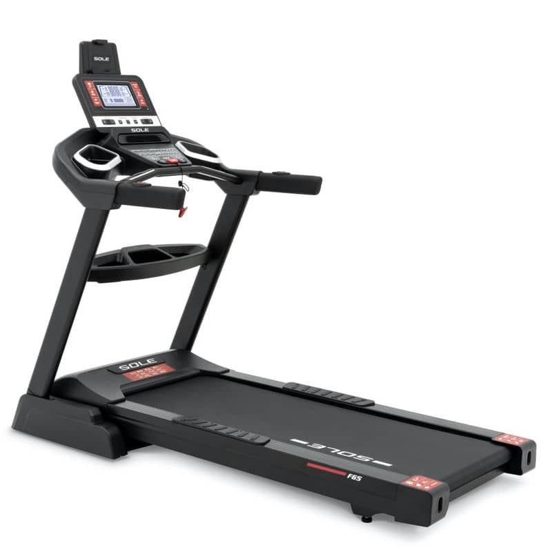 Бігова доріжка Sole F65 була розроблена для високоінтенсивних професійних занять. Тренажер дозволяє провести бігове тренування з мінімальним навантаженням на суглоби завдяки своїй технології поглинання удару. Устаткування має професійне бігове полотно розміром 156х56 см. Користувач може вибрати одну з 10 різних тренувальних програм. М'яке бігове полотно знижує навантаження на суглоби, а міцна дека витримує вагу користувача до 160 кг! Безшумний двигун 3,25 к.с. (постійна потужність) / 8,5 к.с. (максимальна потужність) розганяє бігове полотно від 1 до 20 км/год з кроком 0,1 км/год. Зміна кута нахилу бігової поверхні регулюється від 0 до 15% з кроком 1%. Кнопки регулювання швидкості і кута нахилу виведені на рукоятки для максимального комфорту. Sole F65 забезпечує навантаженням навіть професійних спортсменів для досягнення своїх фізичних меж. Доріжка управляється 7,5-дюймовим РК-дисплеєм Hi Tech з синім підсвічуванням, який показує всі основні результати тренування. Sole F65 пропонує новітні мультимедійні розваги і підвищує Вашу мотивацію для досягнення нових рівнів. Вбудована функція Bluetooth дозволяє через додаток SOLE Fitness підключитися до вашої біговій доріжки. Тут ви можете перевірити свої поточні дані про тренування і регулярно їх зберігати. Таким чином, ви можете досягти поставлених цілей ще швидше і ефективніше. Увага: додаток SOLE несумісне з версіями Bluetooth нижче 4.2! Показники комп'ютера: час, дистанція, пульс, калорії, швидкість, нахил. Пульсозалежнi програми: 2. Вимірювання пульсу: сенсорні датчики для рук. Розмір в складеному стані (ДхШхВ): 112х94х180 см. Джерело живлення: 230 В, 50 Гц.