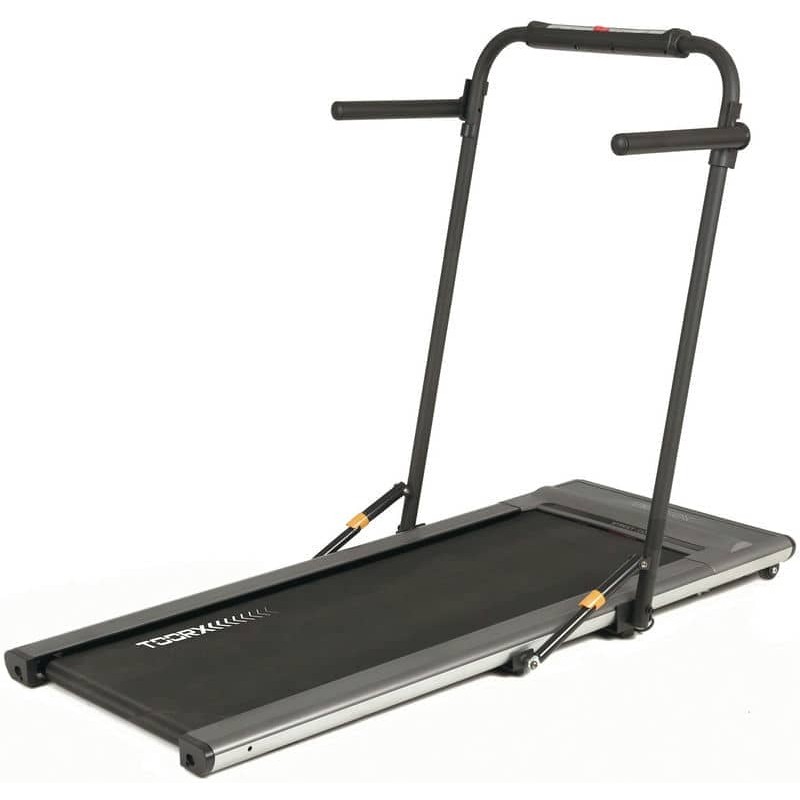 Бігова доріжка Toorx Treadmill Street Compact (STREET-COMPACT) із лінійки Ultra Compact Line італійського виробника Garlando S.p.A. призначена для спортивної ходьби та бігу в домашніх умовах. Модель оснащена попередньо зібраною рамою та транспортувальними роликами, завдяки чому її легко переміщати по квартирі. Бігова доріжка проста в управлінні, має сучасний елегантний дизайн і гарні технічні характеристики. Тренажер розрахований на максимальне навантаження до 100 кг і дозволяє розвивати швидкість від 0,8 до 10 км/год. Бігове полотно розміром 120 х 46 см достатнє для тренування користувачам зростом до 190 см. Зрозумілий дисплей відображає інформацію про швидкість, дистанцію, час і витрату калорій. Бігова доріжка Toorx Treadmill Street Compact (STREET-COMPACT) має знімні поручні для додаткової безпеки, а також систему фіксації для зручного вертикального зберігання.