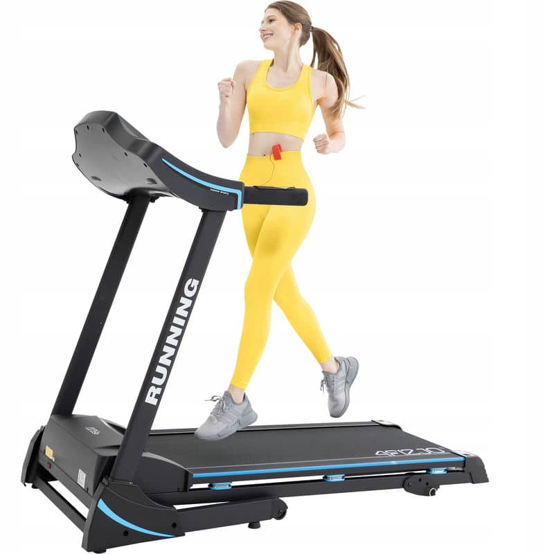 Бігова доріжка від 4Fizjo обладнана надійним двигуном потужністю 1.75 к.с. з піковим значенням до 2.5 к.с. Він забезпечує стабільну швидкість руху від 0.8 до 14.8 км/год під максимальною вагою користувача до 110 кг. Трикомпонентне бігове полотно має некозвку структуру та підвищену стійкість до зношення, його розміри складають 42 x 115 см. Сучасна 6-точкова пружинна система амортизації підвищує безпеку під час бігу та запобігає перевантаженню суглобів і хребта. Кут нахилу полотна бігової доріжки можна вручну регулювати в 3 положеннях від 0 до 15%, це допомагає суттєво урізноманітнити та ускладнити тренування.