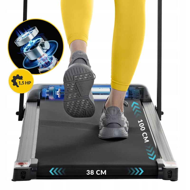Електрична бігова доріжка TM Light від польського бренду 4FIZJO - це ідеальний вибір для домашніх тренувань. Ця модель розроблена для комфортного використання в невеликих просторах, завдяки своїй компактній конструкції та складному дизайну. Доріжка оснащена надійним електричним двигуном з потужністю 1 к.с., який може досягати пікової потужності 1.5 к.с., забезпечуючи максимальну швидкість до 10 км/год.