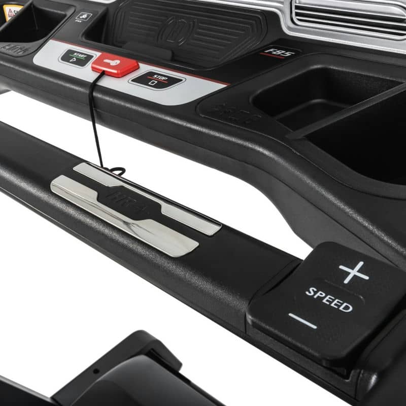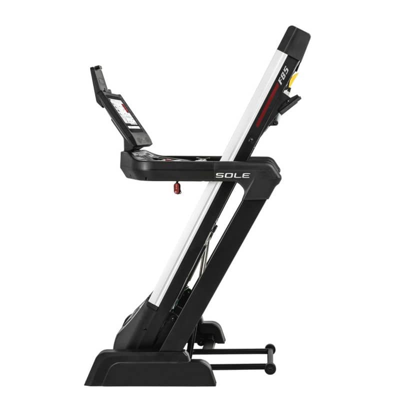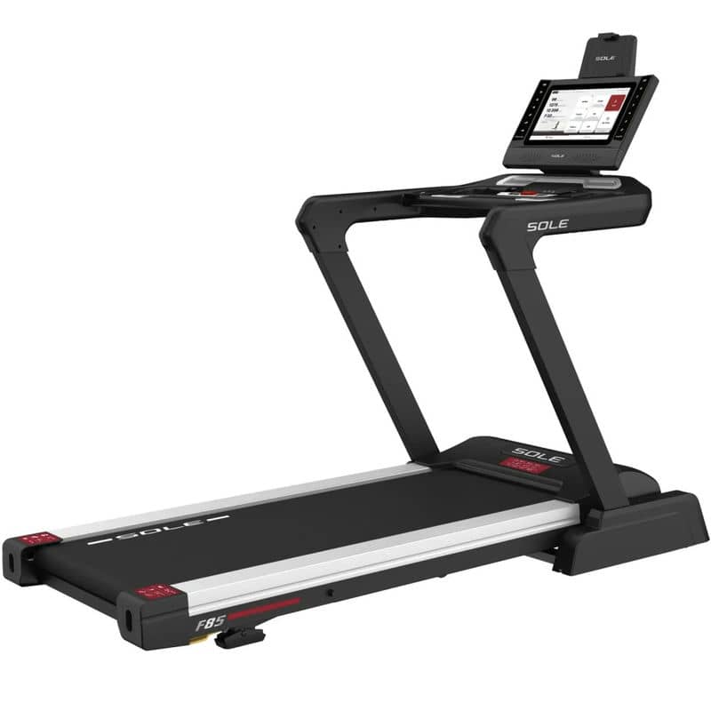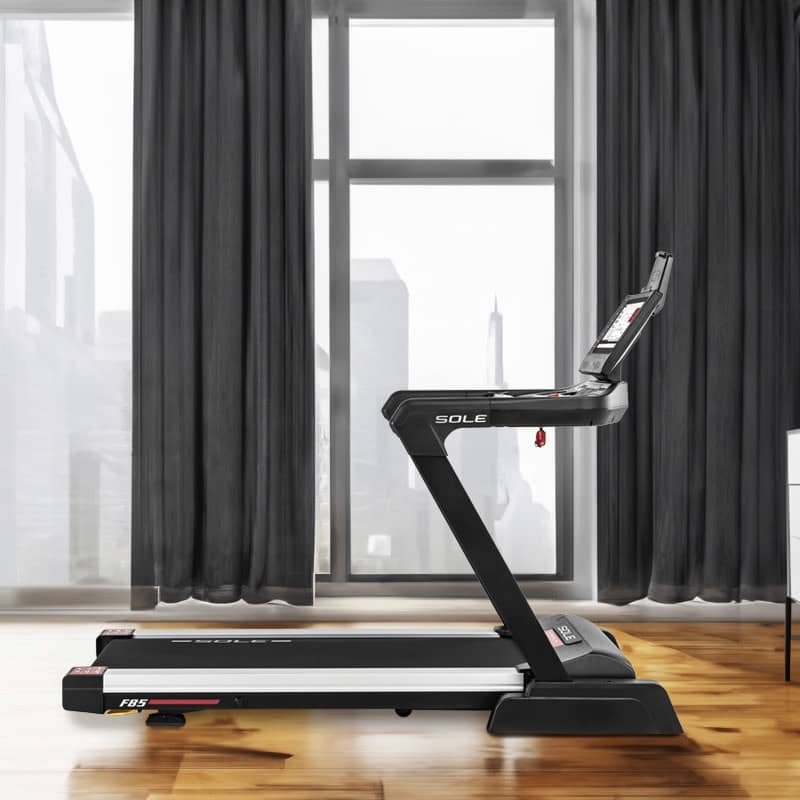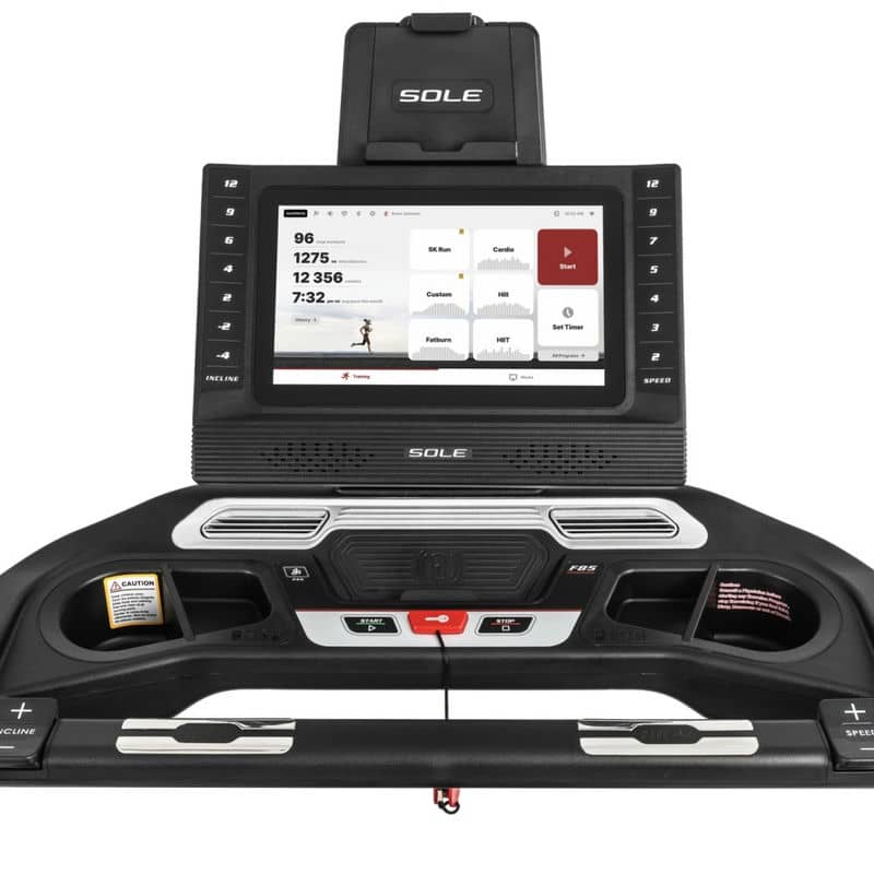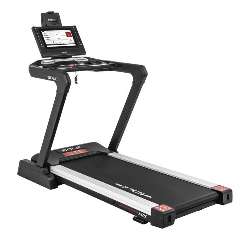 Бігова доріжка Sole F85 була розроблена для високоінтенсивних професійних занять. Тренажер дозволяє провести бігове тренування з мінімальним навантаженням на суглоби завдяки своїй технології поглинання удару. Устаткування має професійне бігове полотно розміром 156х56 см. Користувач може вибрати одну з 10 різних тренувальних програм. М'яке бігове полотно знижує навантаження на суглоби, а міцна дека витримує вагу користувача до 180 кг! Безшумний двигун 4,0 к.с. (постійна потужність) / 10,0 к.с. (максимальна потужність) розганяє бігове полотно від 1 до 22 км/год з кроком 0,1 км/год. Зміна кута нахилу бігової поверхні регулюється від 0 до 15% з кроком 1%. Кнопки регулювання швидкості і кута нахилу виведені на рукоятки для максимального комфорту. Sole F85 забезпечує навантаженням навіть професійних спортсменів для досягнення своїх фізичних меж. Доріжка управляється 23 см TFT-дисплеєм, який показує всі основні результати тренування. Sole F85 пропонує новітні мультимедійні розваги і підвищує Вашу мотивацію для досягнення нових рівнів. Мультимедіа: додаток, Aux, Bluetooth, тримач пляшки, USB. Увага: додаток SOLE несумісне з версіями Bluetooth нижче 4.2! Показники комп'ютера: час, дистанція, пульс, калорії, швидкість, нахил. Пульсозалежнi програми: 2. Вимірювання пульсу: сенсорні датчики для рук. Розмір в складеному стані (ДхШхВ): 112х94х180 см. Джерело живлення: 230 В, 50 Гц.