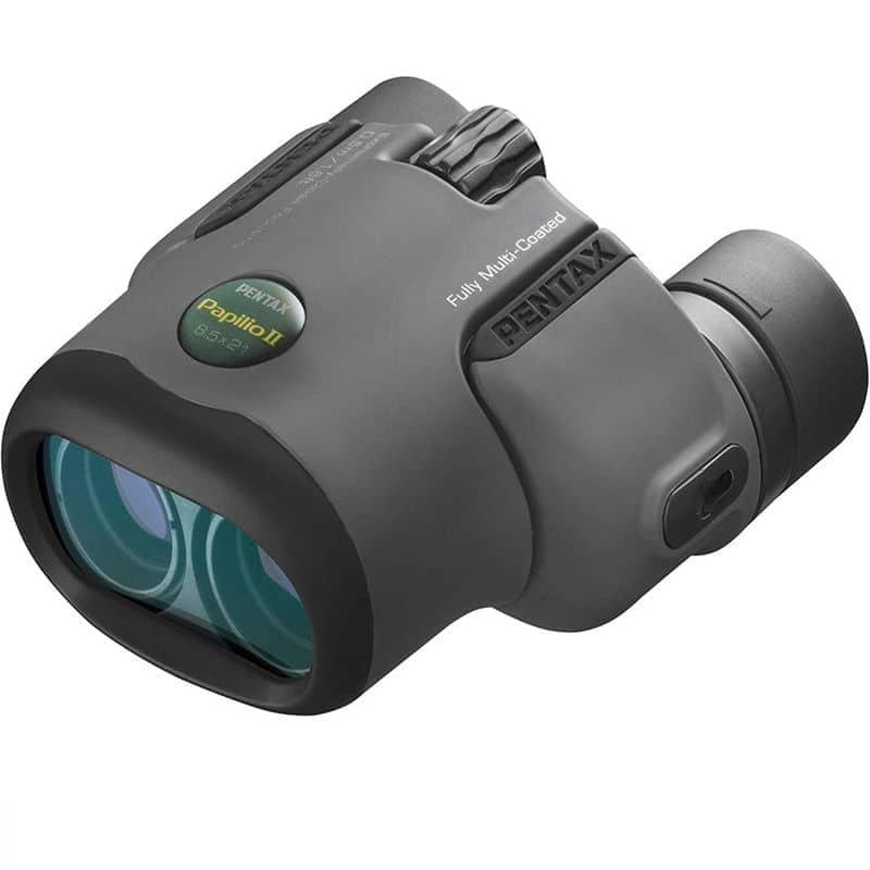 Компактний бінокль Pentax UP 8.5x21 Papillio II (62002) відповідає сучасним вимогам та стандартам: повне багатошарове просвітлення лінз, призми з високоякісного оптичного скла BaK4. Оновлене покриття лінз з покращеним світлопропусканням створює кришталево чітке зображення. Бінокль Pentax UP 8.5x21 Papillio II (62002) унікальна модель. Завдяки механізму автоматичної компенсації зміщення поля зображення правого та лівого монокулярів при фокусуванні, забезпечується унікально коротка дистанція спостереження в бінокль Papilio – лише 50 см! Бінокль серії Papilio призначений не тільки для макроспостереження з відстані 50 см, користувач також можете детально спостерігати за будинками архітектури, зоряним небом чи спортивними змаганнями. Корпус виробу має гумове покриття яке сприяє додатковому захисту від механічних пошкоджень. Модель бінокля Pentax UP 8.5x21 Papillio II (62002) призначена для використання під час подорожей, спостереження за дикою природою, тощо.