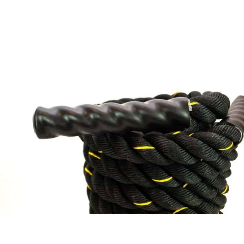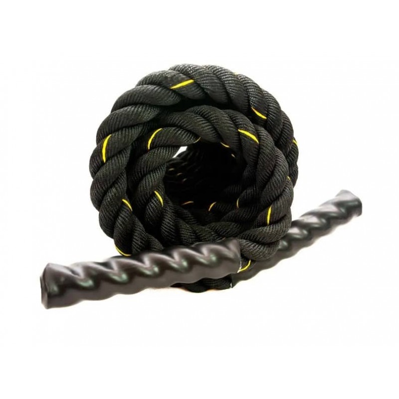 Бойові канати для кросфіту – відмінні інструменти для тренувань, які не тільки покращують кардіо, але й забезпечують тренування всього тіла з упором на підвищення витривалості та збільшення сили м'язів. Вони допомагають прокачати м'язи преса та збільшити силу рук та плечей. Добре підходять для спалювання тонн калорій. Цей тип каната відомий під багатьма іменами, такими як бойовий канат, канат для кросфіту, канат для фітнесу, канат для функціонального тренінгу - список можна продовжувати. Канат для кросфіту - недорогий, але ефективний спортивний інвентар, що надає широкий вибір вправ, які підходять як новачкам, так і професійним спортсменам. Часто використовується при тренуванні боксерів, плавців, баскетболістів, футболістів та тенісистів. Канат - популярний інструмент для силового тренування, за його допомогою Ви прокачає руки, плечі, спину, м'язи преса і навіть ноги (при присіданнях). Використовуйте канат, щоб поліпшити витривалість, наростити масу м'язів, перевести кардіо тренування на новий рівень і спалити калорії. Тренування з канатом збільшують час реакції та швидкість метаболізму. Канат пліток з трьох ниток, покритих поліефірною сумішшю для збільшення міцності та запобігання розривам та зношування. Бойовий тренувальний канат може використовуватися, як у приміщенні так і просто неба. Покриття забезпечує надійну та довготривалу роботу, тому Ви можете повністю зосередитись на своєму тренуванні. Будова каната дозволяє його легко згортати та брати практично скрізь – від будинку до спортзалу, від парку до пляжу. Все, що потрібно, це стабільний якір, такий як дерево або жердина, і він готовий до роботи.