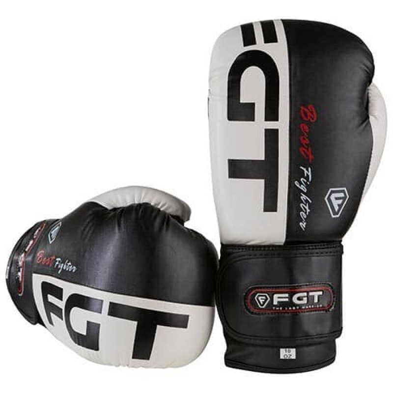 Боксерські рукавички FGT 10oz, чорний-білий, код: FT-3555/10-WS