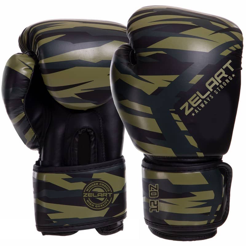 Боксерські рукавички Zelart 12 унцій, камуфляж хакі, код: BO-3397_12H