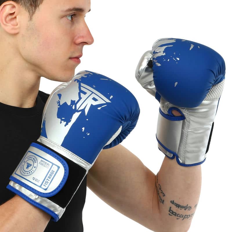 Боксерські рукавиці Fistrage 12 унцій, синій-срібний, код: VL-9735_12BLGR