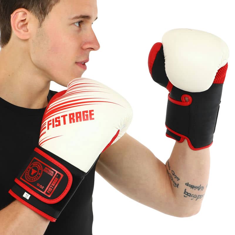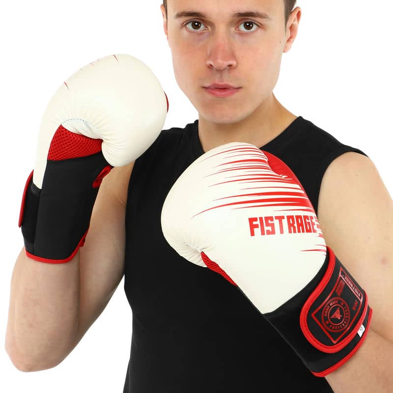 Боксерські рукавиці Fistrage 14 унцій, білий-червоний, код: VL-9734_14WR