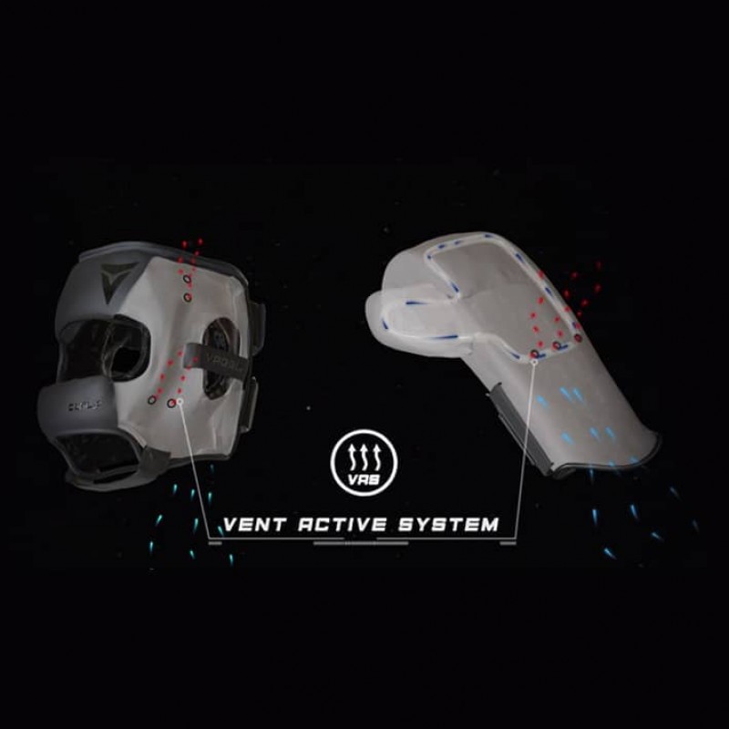 Завдяки спеціальному пінно-гелевому наповнювачу VPGel та сталевому каркасу навколо обличчя, забезпечується повне поглинання удару та максимальний захист під час спарингів та змагань. Технологія VPGEL – це наповнювач із піни високого тиску з інтегрованим гелем, що відрізняється чудовою зносостійкістю та відмінним розсіюванням точки навантаження.