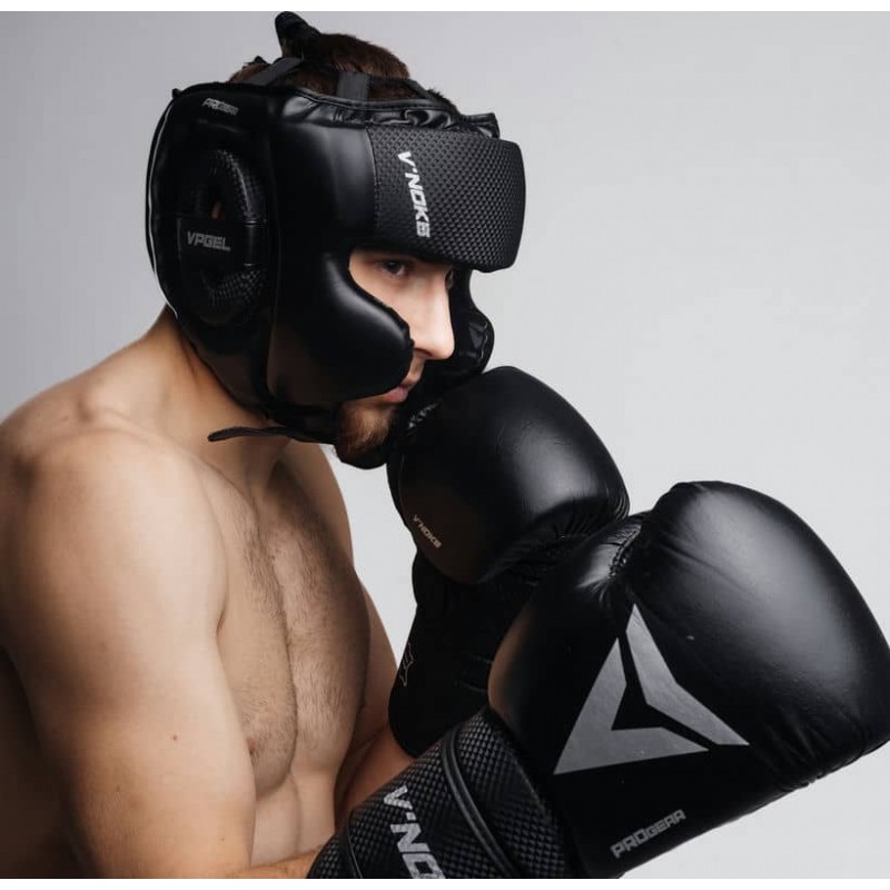 Складові шолома тип шолома: тренувальний; оглядовість: огляд без перешкод; матеріал внутрішньої частини: абсорбуюча тканина; наповнення: пінно-гелевий наповнювач; фіксація ззаду: липучка; захист обличчя: з додатковим захистом вилиць від розсічень; захист вух: так; Характеристики Розмір: L/XL; матеріал: Синтетична шкіра; особливості: Із захистом вилиць;