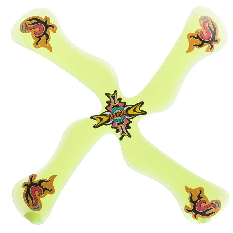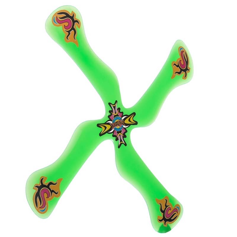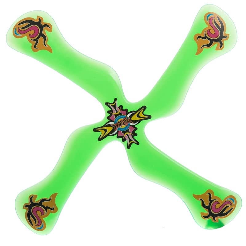 Форма бумеранга відрізняється від традиційної - він більше схожий на четирёхлопастний гвинт. Верхня поверхня у нього крилоподібна (опукла), в той час як нижня плоска - за рахунок цього і створюється аеродинамічна сила, завдяки якій бумеранг летить далі, обертається швидше, а також повертається до користувача. Для його виготовлення використовується високоякісний ударостійкий пластик яскравого кольору, завдяки чому бумеранг добре помітний в траві або чагарнику, тобто втратити його дуже складно.