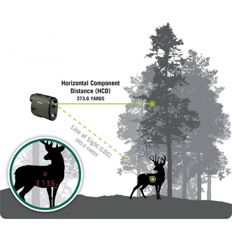 - HCD (Horizontal Component Distance) – У Diamondback HD 2000 використовується технологія вимірювання дальності HCD з кутовою компенсацією, щоб дати стрілкам з луку та гвинтівки критичні дані про відстань, необхідні для точних пострілів. Для вимірювання дистанції до об'єкта по горизонталі (проекції реальної дистанції на горизонтальну поверхню).