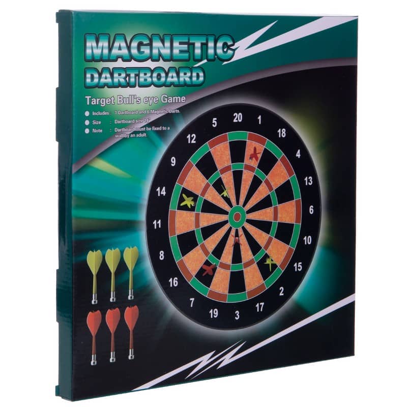 Ця магнітна дошка для дартсу - чудовий спосіб безпечно грати вдома або в офісі. Дошка просто висить на будь-якій стіні, і коли ви кидаєте в неї магнітні дротики, вони прилипають до неї. Цей набір - підходящий варіант, щоб залучити дітей до гри без ризику отримання травм;